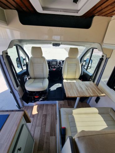 Vivienne is an automatic seats 4, sleep 4 people in the cosy, upper pull down bed with foam mattress as well as in the rock and roll pull out bed in the living space.